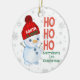 Celebrate a special first Christmas with this adorable snowman ornament! Featuring a cheerful snowman in a festive Santa hat that says "Santa Is Here" and playful "Ho Ho Ho" text, this ornament is the perfect keepsake for baby’s first holiday season. Personalise it with the baby's name to make it truly one-of-a-kind. The background includes delicate snowflakes, adding to the holiday charm. This ornament makes a wonderful gift for new parents and a treasured addition to any Christmas tree.