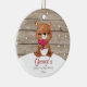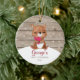 Cute woodland watercolor Baby's first Christmas ornament featuring a lovely little bear holding a sweet heart. Personalisable with your baby's name.