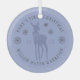 Modern baby dusty purple ornament for baby's first Christmas personalise with baby's name, year, deer with a bow, snowflakes and curve lettering in serif font.