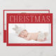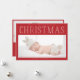 Celebrate your new baby's first Christmas with this Babys First Christmas Photo Birth Announcement holiday card. Featuring a cosy photo of your little one framed by a vibrant red border, this design captures the warmth and joy of your baby's first holiday season. The bold "Christmas" text adds an elegant touch, making it a keepsake. Perfect for sharing love and holiday cheer, this card brings a festive spirit to friends and family. Its minimal yet classy design makes it the perfect way to introduce your new baby to your loved ones during the holidays.