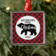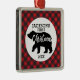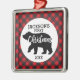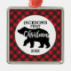 A cute baby boy first Christmas photo ornament.The Christmas ornament is decorated with a bear and a buffalo plaid pattern. Personalise it with your child's name and the year on one side and a photo on the back. Designed for you by Blackberry Boulevard.