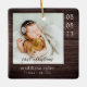 This is a lovely ornament, and great that you personalise the back with details of birthday, weight, etc.. My only tiny disappointment is the "My First" doesn't stand out very well on the background. More than happy with the printing of the photo and the writing on the back.