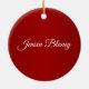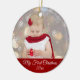 Elegant round ceramic Baby's First Christmas custom photo ornament. The front has a place for your own uploaded photo, while the back is ready for you to personalise with baby's name. Makes the perfect gift for new parents, grandparents and will be a treasured keepsake year after year.