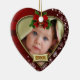 Adorable heart shaped Baby's First Christmas custom photo frame ornament. The front has a place for your own uploaded photo and the year, while the back is ready for you to personalise with baby's name and year as well. Makes the perfect gift for new parents grandparents and will be a treasured keepsake year after year.