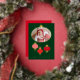A simple modern holiday photo card to share those precious memories. Real metallic gold foil accents the ornaments, text and you newest family member's photograph with a luxurious shine on a dark green background.