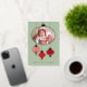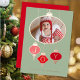 A simple modern holiday photo card with red JOY ornaments on a sea foam green background. Real metallic gold foil accents the ornaments, text and you newest family member's photograph with a luxurious shine for sharing those precious memories.