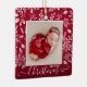 Baby's First Christmas Photo on Cranberry Ceramic Ornament