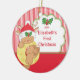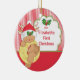 Cute personalised dated Photo Christmas Ornament featuring an adorable baby deer sleeping on a moon set on a red & green stripe background, just add YOUR PHOTO! Perfect for baby girl or baby boy first christmas & second christmas. A Wonder Christmas gift sure to be treasured for many years to come.