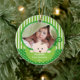 Cute Photo Christmas Ornament featuring an adorable baby in a pea pod with green & white striped background, just add YOUR PHOTO! Perfect for first christmas & second christmas. A Wonder Christmas gift sure to be treasured for many years to come.