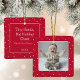 Commemorate your miracle baby's first Christmas with this sweet photo ornament with a whimsical pink polka dot on red featuring a photo on one side and your text on the back.