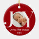 Celebrate your baby’s very first Christmas with this beautiful personalized “JOY” photo ornament! Featuring your little one’s picture inside the “O” and customizable text for name and year, this red and white keepsake adds a heartfelt touch to your holiday tree. Perfect as a cherished gift for parents, grandparents, or godparents — a timeless decoration you’ll treasure for years to come.
