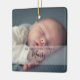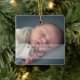 This is a lovely ornament, and great that you personalise the back with details of birthday, weight, etc.. My only tiny disappointment is the "My First" doesn't stand out very well on the background. More than happy with the printing of the photo and the writing on the back.