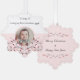 Baby's first Christmas pink ornament is designed with a floral theme and Christmas and New year wishes. Hang this on the Christmas tree to brighten up your festive decor. You can add your little ones photo as well as customise name, wishes and other text on the ornament.