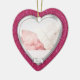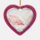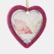 You can personalised the baby photo and the text on this hot pink and silver baby's first Christmas customisable tree ornament. The design features a hot pink (fuchsia, magenta) simulated glitter pattern with a silver heart frame. Personalise the baby photo, the year, and the name on the back using the personalise options. Or, to make more extensive changes to this babys 1st Xmas ornament, use the customise it option. Great for a baby girl.