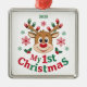 Commemorate your little one's special first holiday season with this timeless reindeer ornament. The square shape and sleek metal construction make it a high-quality keepsake that will last for years to come. Display it proudly on your tree or give as a heartfelt gift to loved ones.