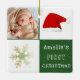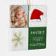 Cute Baby's first Christmas Santa Hat Snowflake Photo Ceramic Ornament. Green and white background with a beautiful snowflake and a red Santa hat. Celebrate your baby's first Christmas with a personalised touch! This baby's first Christmas ornament is the perfect way to create a lasting memory. With custom photo, snowflakes, and a red Santa hat, this ornament will add a playful and joyful touch to the ornament, while the custom photo makes it truly unique and special.