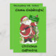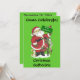 This flat card party invitation is green with a cute Santa Claus holding a green sign that says Baby's 1st Christmas. He is standing in snow by a decorated Christmas Tree surrounded by animals including red birds, a squirrel, and bunny. Customise your information and add your own photo with the templates.