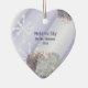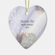 An elegant design featuring a soft stripes with white snowflakes and pretty hydrangea flowers accenting the name and date.