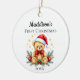 Celebrate a precious milestone with this adorable Baby's First Christmas ornament. Featuring a cute teddy bear in a Santa hat, personalised with your baby's name, "First Christmas," and the year on the front. The back is specially designed for you to add a cherished photo, making it a truly unique and customisable keepsake. Perfect for new parents, grandparents, or as a thoughtful baby shower gift. This personalised ornament is a wonderful way to commemorate that very first holiday season and will be treasured for years to come.