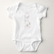 A baby bodysuit decorated with a cute white and pink sitting Easter bunny for a baby girl's first Easter. A perfect gift for new parents.