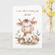 Celebrate baby’s adorable milestone with this sweet design featuring a wide-eyed baby cow sitting up for the first time. Set outdoors with soft greenery surrounding the little calf, the artwork radiates warmth and cuteness. The front reads “Look Who’s Sitting Up!” with a space to write the baby’s name and special date, making it a wonderful keepsake for parents. A thoughtful way to mark one of baby’s exciting firsts in a memorable and personal way.