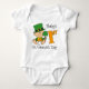 Baby's First St. Patrick's Day cute design. It features a cartoon, baby dressed in an Irish outfit with a green shamrock. Celebrate your son's very first St. Patrick's Day with this cute design.
