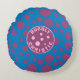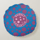 Baby's Name Purple Polka Dots Bubbly Blue Trippy Round Throw Pillow for Baby's room. Personalise and Customise. Pretty floaty bouncy balls pattern.