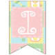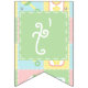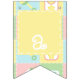 Four squares in soft pastels of pink, green, blue, and yellow are framed by a white design like stitch marks and decorated with cute, baby-themed icons of a bottle, diaper, rattle, and bib. Customise the message on the banner with your soon-to-be little one's gender or a message of your choice to create a truly unique party decoration for your baby shower. This can easily be changed between "boy", "girl", and "baby", and if you're having twins or other multiples, just click the "Customise It" button for more options.
