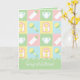 Four squares in soft pastels of pink, green, blue, and yellow are framed by a white design like stitch marks and decorated with cute, baby-themed icons of a bottle, diaper, rattle, and bib. A bright blue, pink, and yellow pacifier adds a fun final touch to the back. Customise the sentiment on the overlay panel on the front and in the interior with your message of choice to create a truly unique card for any baby shower or expectant mother. You can also swap to the note card size to easily turn this into a sweet thank you card for after the shower. Be sure to check out the full Baby's Quilt collection for more great gifts and products for a baby shower or the little one in your life.
