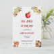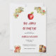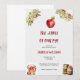 Cute apple theme baby shower invitation card featuring watercolor illustration of apples. The text says "the apple of our eye."