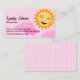 Babysitter business card, pink with cute sun card