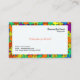 Design features a white background cover with colourful jigsaw puzzle borders encapsulating the whole card. Your name and job title is at the top right corner. A slogan sits at the middle of the card - It is an option for you to say something about yourself or the service that you provide. Your contact details, email and address is at the bottom left corner of the card. At the back of the card, you have your business URL (If you do not have a business entity, replace it with slogans or taglines). The letterings are kept small to create space for your clients to take down important notes. Please see "FOR TAKING NOTES" at the upper left corner. All these will make the card a good conversation piece or rather an ice-breaker when you meet potential clients. A good card for babysitters and Nannies.