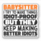 Funny Babysitter Sayings "Babysitter I Try To Make Things Idiot Proof But They Keep Making Better Idiots". Grab this Funny Babysitter design as a funny gifts for an awesome mum, dad or friend.