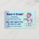 Need an eye catching design for your babysitting or home daycare business? Here's a fun way to attract customers. Customise these cards with your personal information, phone and/or website. Sure to get attention and a few laughs.