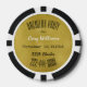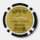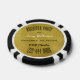 Unique bachelor party invitation done on a poker chip. A gold tone background, on the black and white striped poker chip, with black and white custom text ready to personalise for your event. Fun way to invite guests to your special day.