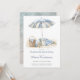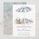 A bachelorette party invitation, featuring a beach theme with watercolor umbrella, blanket, picnic. Available in print, as a digital download, or both.