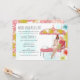 Bachelorette party invitation for beach getaway weekend features bride in a tropical setting. Bride to be available in blonde, brown, and red hair and dark or light skin.