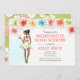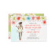 Bachelorette Beach Weekend Getaway Invitation features a tropical theme with hibiscus flowers and African American bride to be enjoying a cocktail. Available with blonde, brown, red hair girl and with dark or light skin.