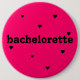 "bachelorette" button hot pink and black with hearts