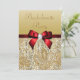 Bachelorette Faux Gold Sequins Royal Red Bow Invitation