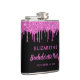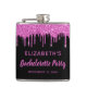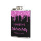 Girly and fun personalised flask for your bachelorette party featuring sparkly hot pink faux glitter dripping down a black background and "Bachelorette Party" in a hot pink script. You can further personalise with your name and party date.