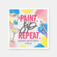 Bring a colourful touch to your paint and sip bachelorette party with art-themed napkins. Simply customise with the name of the bride and date for a fun personal feel. Design features typography "paint sip repeat" as well as paint splatters complete with pink, yellow and blue paint splatters as well as hand painted paint palette, glass and paint brushes against a marble background.