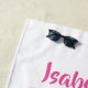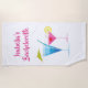 This tropical beach towel is accented with fun cocktails and Bachelorette, written in a fun font, making it perfect for the bachelorette pool party or day at the beach!