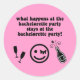 What happens at the bachelorette party stays at the bachelorette party! Funny bachelorette party shirts, tshirts and gifts for bachelorette parties and the bride to be. Cute bachelorette party gifts to celebrate that last day of being a single female. Get ready to have some laughs before the wedding!