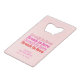 Get the party started with this Drunk in Love Bachelorette Party Retro Pink Credit Card Bottle Opener. This trendy design features the phrase "Drunk in Love" in a stylish retro font, with plenty of room for customisation with the bride's name and the date or location. Perfect favour for your event to add some fun and flair.