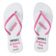 The flip flop is great quality and comfortable. It arrived on time and fit perfectly. I got this for oldest daughter who is my Junior Maid of Honor and she adored them. The printing was centered and just as I expected and hoped. Perfect!