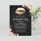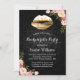 3D Gold Faux Foil Look Lips Damask Blush Floral Bachelorette Party Invitation.