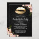 Bachelorette Party Gold Lips Damask Blush Floral Invitation