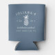 Kick off your bachelorette party, girls weekend or trip with these unique custom can coolers. Personalised design in dusty blue features the bride to be's name, event type, year and destination flanking a white pineapple silhouette illustration.