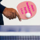 This is a pink ping pong paddle for a bachelorette party. Jane's Bachelorette Party is on the paddle in pink test. The name, bachelorette party and the date can be changed with the Personalise button.